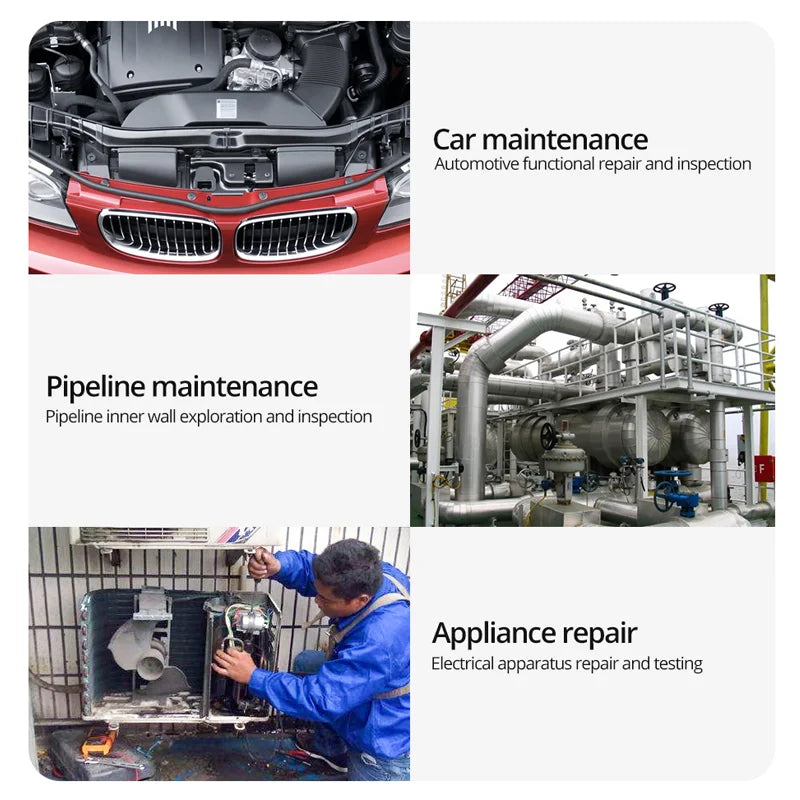 4. 【Wide Application】: industrial Endoscope is excellent for inspection in pipes or areas that are not viewable by the naked eye. It is widely used in fields such as car maintenance, mechanical inspection, pipe repair, household appliance inspection, house maintenance, wall structure inspection, sewer/ drain inspection, etc. With a large-capacity battery, you'll have plenty of power to get jobs done. Perfect for various hard-to-see tasks.