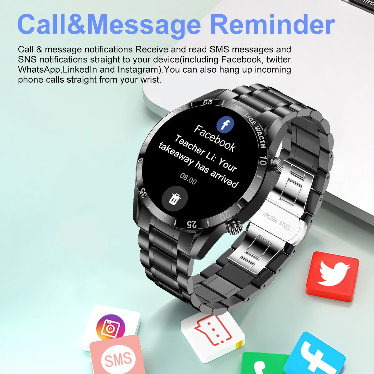 Luxury Full Circle Touch Screen Men Smart Watch Bluetooth Call Steel Band Waterproof Sports Fitness Watch For Android IOS